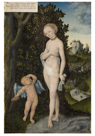 A good example is Lucas Cranach the Elder’s (1472 – 1553) – Venus with Cupid [,] Stealing Honey.