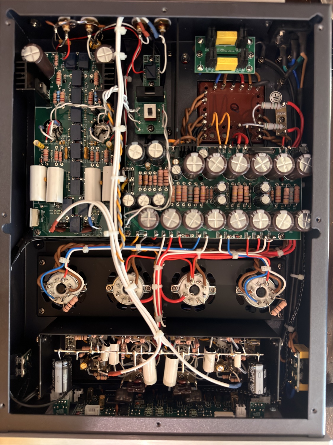 So I was confused – looking at the tubes through the rollcage and applying both fingers and toes to the task I counted the two AR4s, the two EL34s, and all 4 12AX7s. I had two toes left over. Not seeing any 6922s.