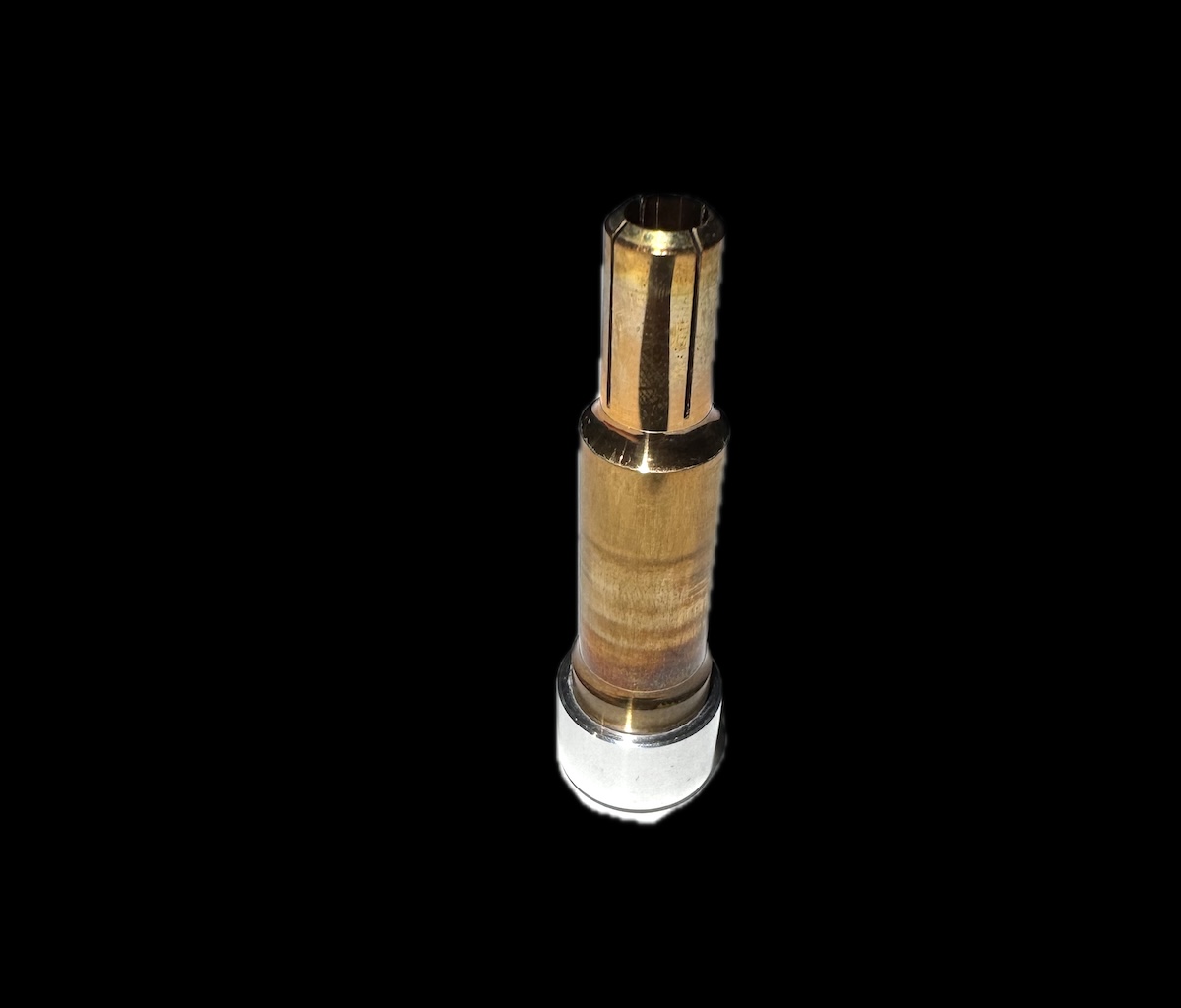 • Eight brass rods are suspended independently of each other in the body. As soon as JEWEL is placed on the record, the rods plunge down and gently touch the surface. These transmit some of the resonances inside JEWEL, where they are eliminated. The suspension allows the individual rods to adapt perfectly to any differences in height of the record surface caused by different label structures. This ensures that the contact surface of the brass rods remains constant for all records.