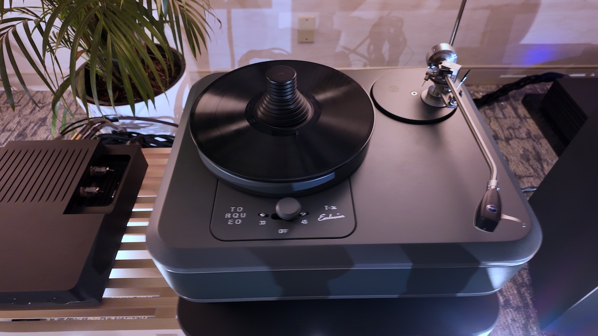 Also in this video two High Water Sound rooms were Jeff Catalano always manages great sound—also often with tubes and horns. Catalano's rooms featured the unique Alieno Audio electronics from Italy driving YG Acoustics speakers in one room and Zeiler electronics and the company's new loudspeakers in another, source by a Torqueo idler wheel drive turntable.