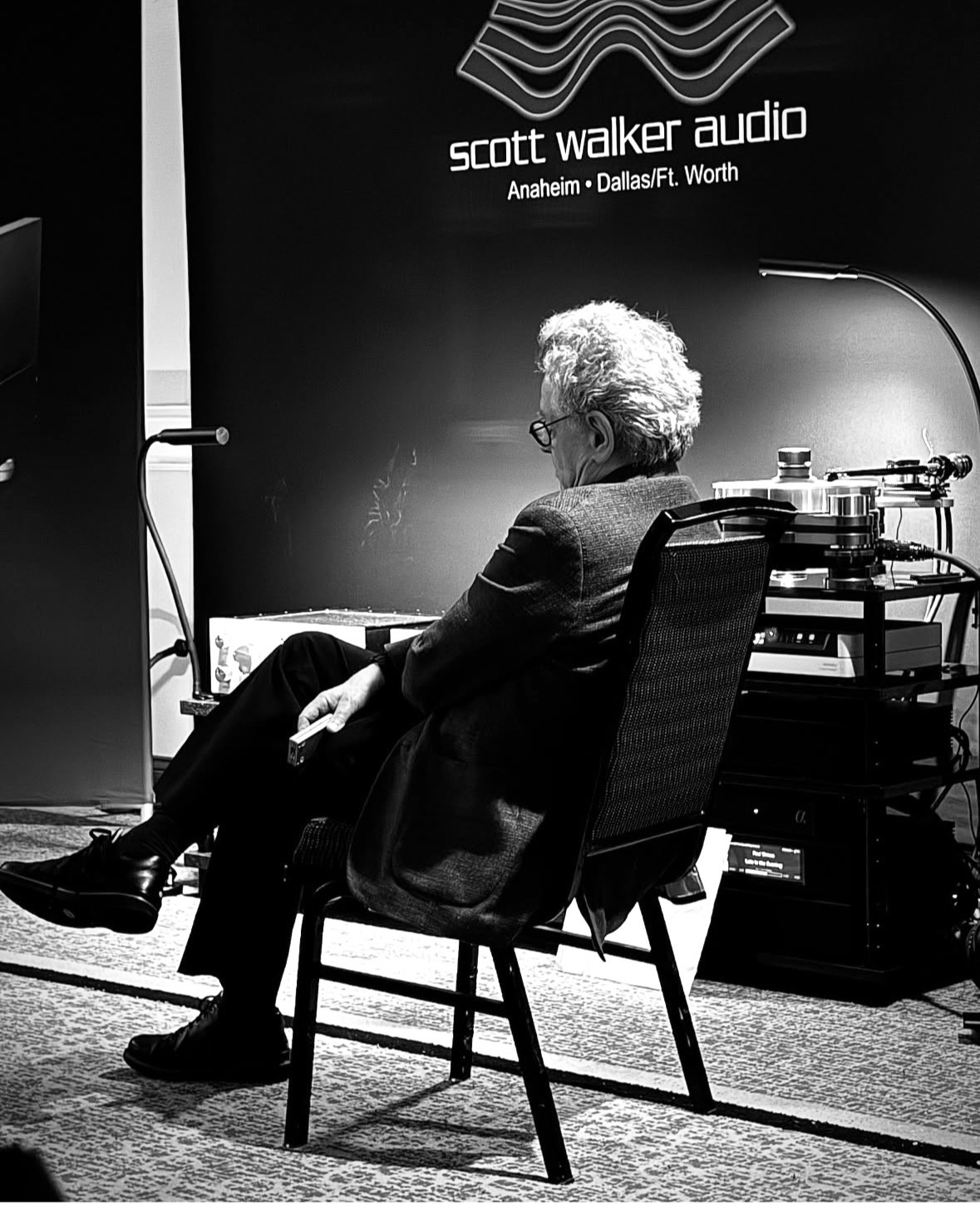 On Friday evening I played records in the big Acora Acoustics room starting at 8PM and ending I can't remember when but it was S.R.O. for most of it, which was good because I shlepped a huge, heavy record bag filled with great test pressings, lacquers and difficult to find pressings and it would have been a shame to play to an empty house.