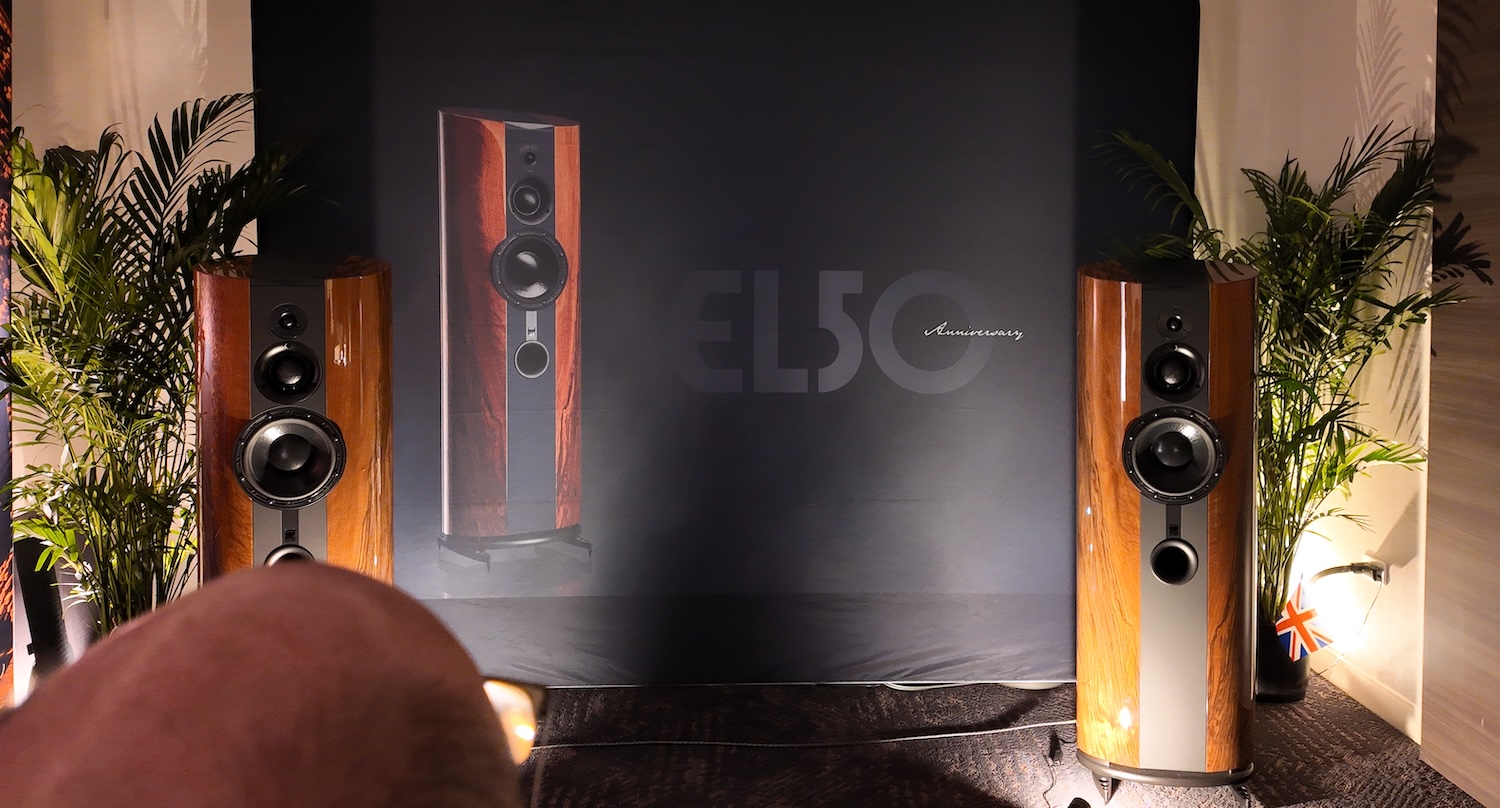 ATC debuted its EL50 Anniversary loudspeaker its most elegant looking powered loudspeaker powered by a 3 channel discrete "Amp-pack" MOSFET Class A-B power delivering 200W bass, 100W midrange and 50 W to the tweeter. These sounded really superb, if you don't mind the hyperbole.