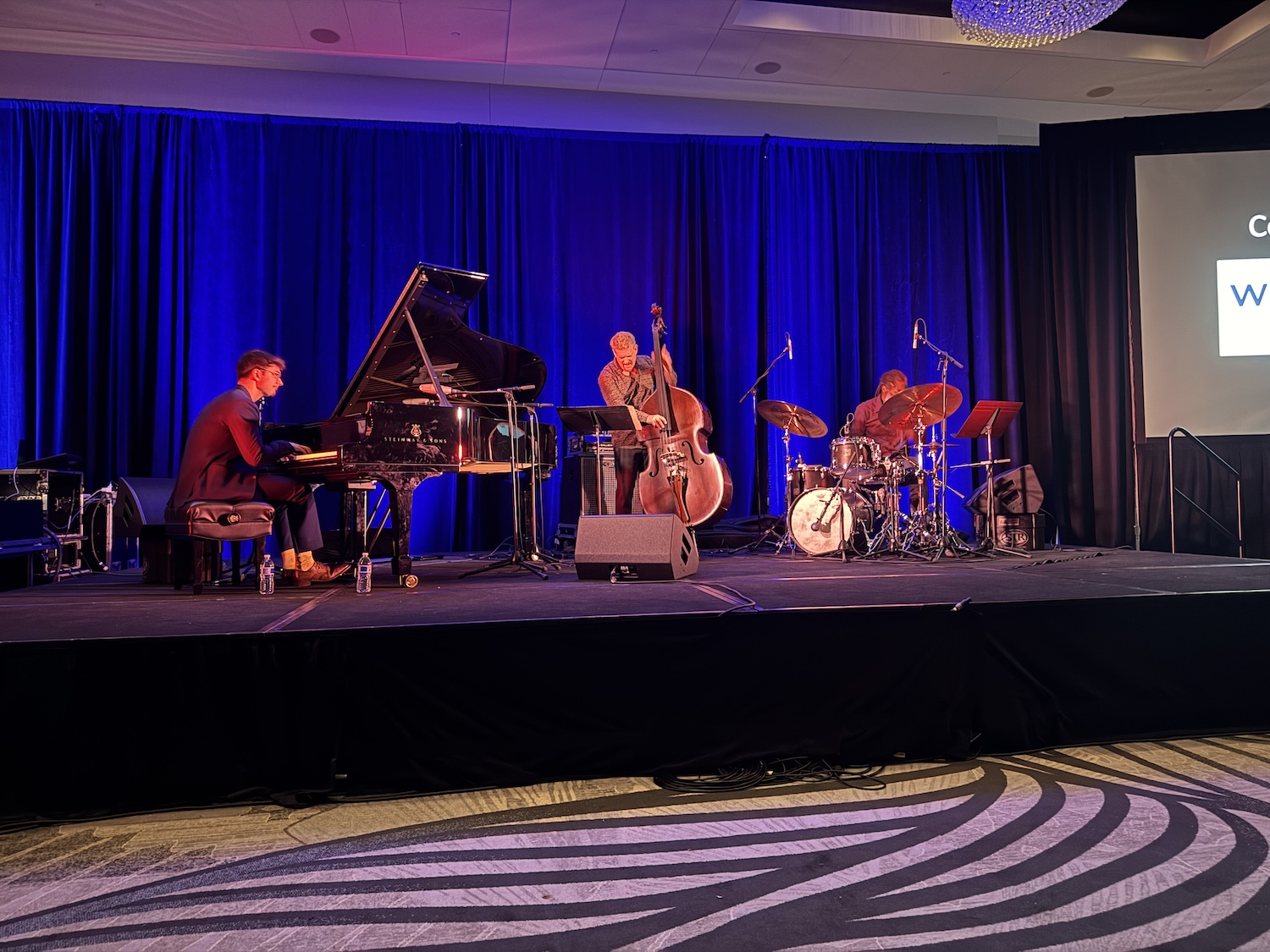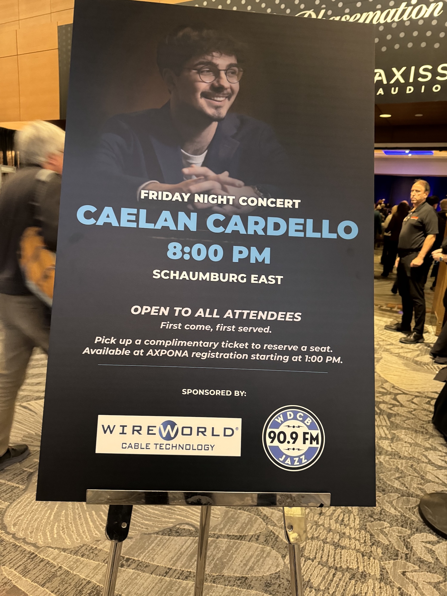 Friday evening Caelan Cardello and his trio (Dana Hall on drums, Clark Summers on bass) performed for a packed theater that seats 400 and there were but a few empty seats. I'd lobbied AXPONA V.P. Event Director Liz Smith to spend a considerable amount extra for a Steinway Grand for Caelan and I just worried that following the crazy day, attendees would go home and show participants would leave for dinner and there'd be a small crowd clustered at the front of a mostly empty hall. NO PROBLEM!