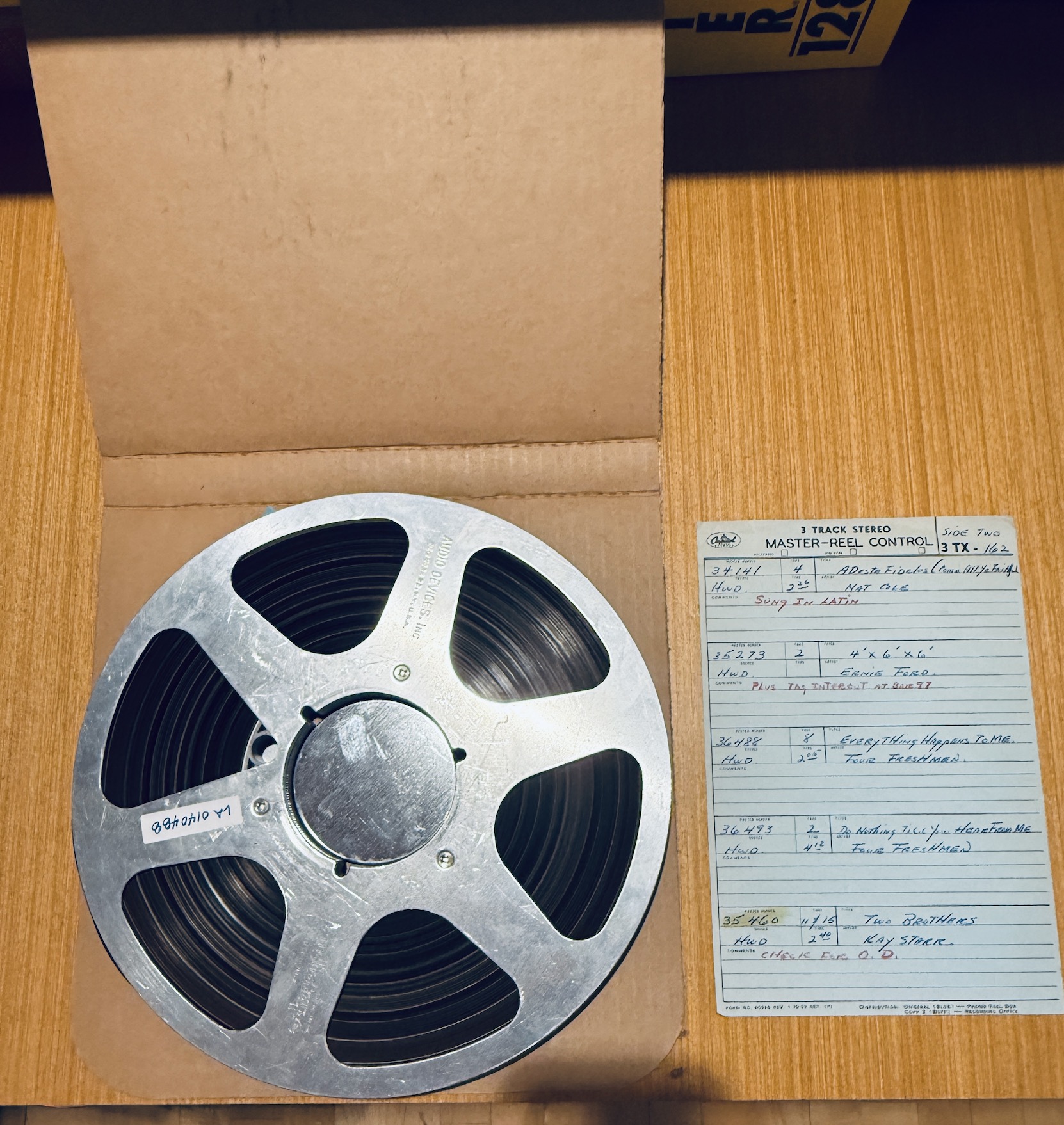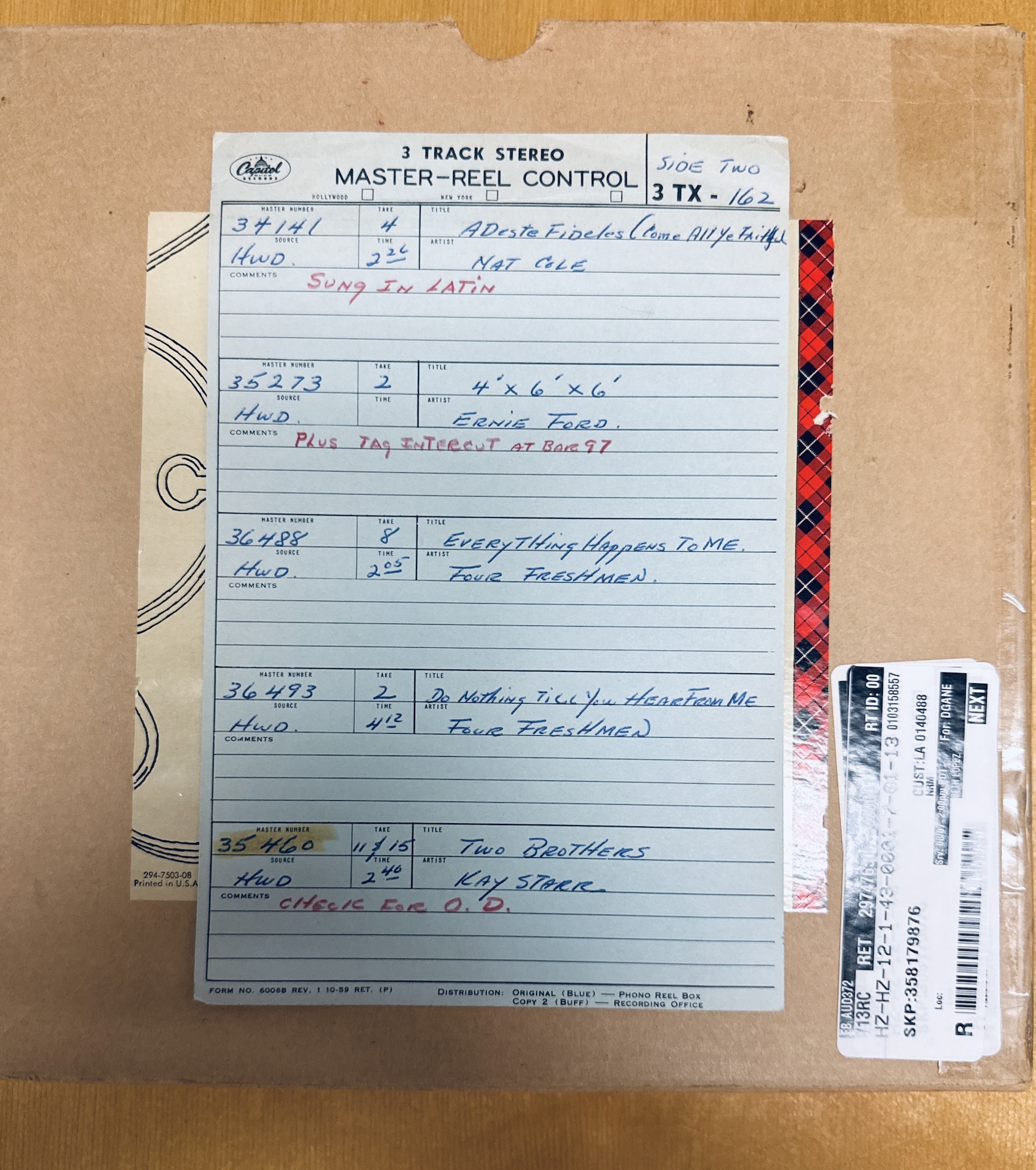 Those two songs were on entirely different tapes. Then we had three tapes - fortunately - but they were all three-track. With three-track tapes, this is all new to me. I've known about that process. Chad actually did the Nat King Cole Story from the three-track maybe 15 years ago, 20 years ago at this point. That's phenomenal. Once we got the three tracks and we had the other songs, basically what you were saying in your description and some of the notes you referenced, you've got the music on the left side and the music on the right side.