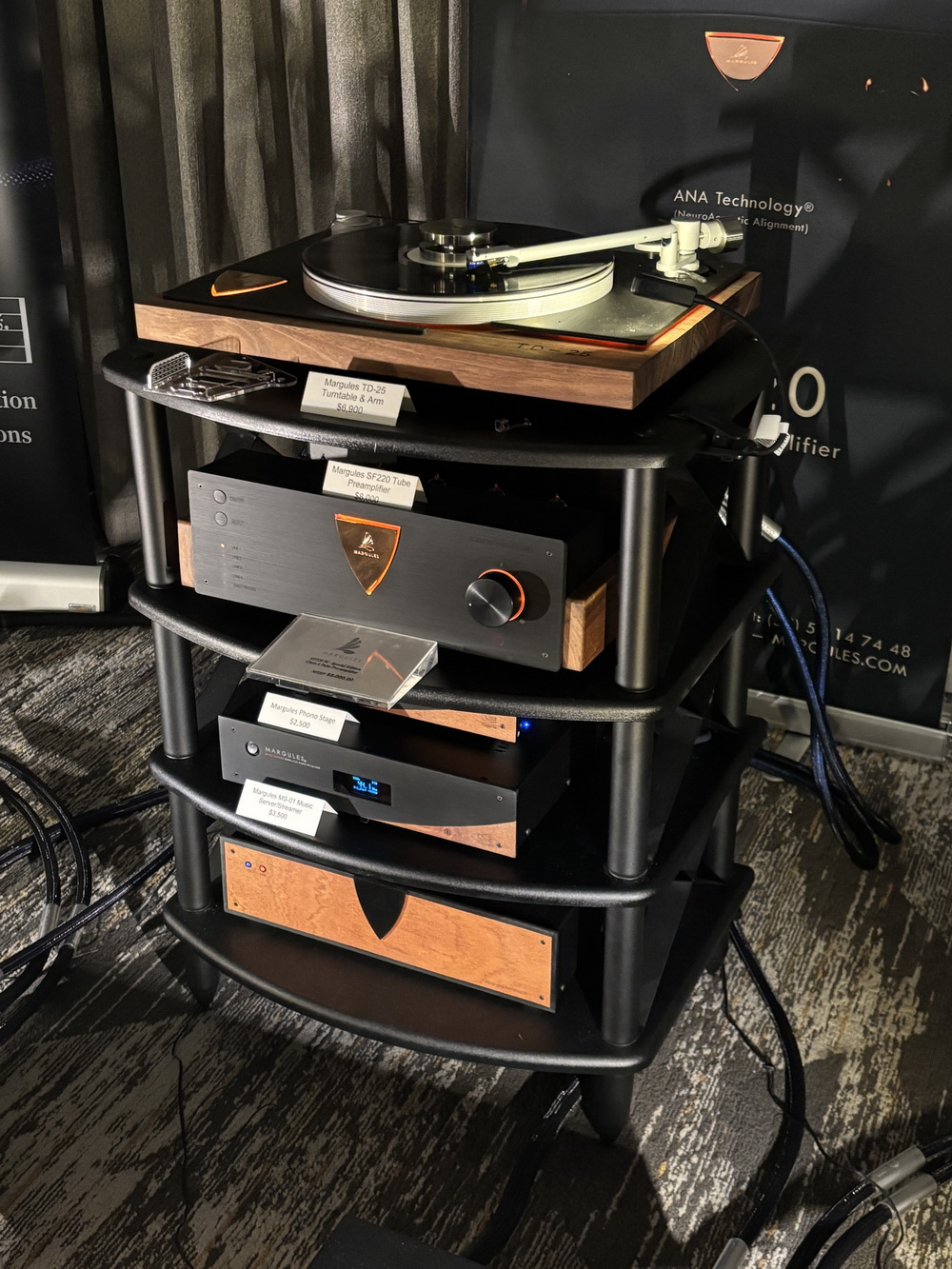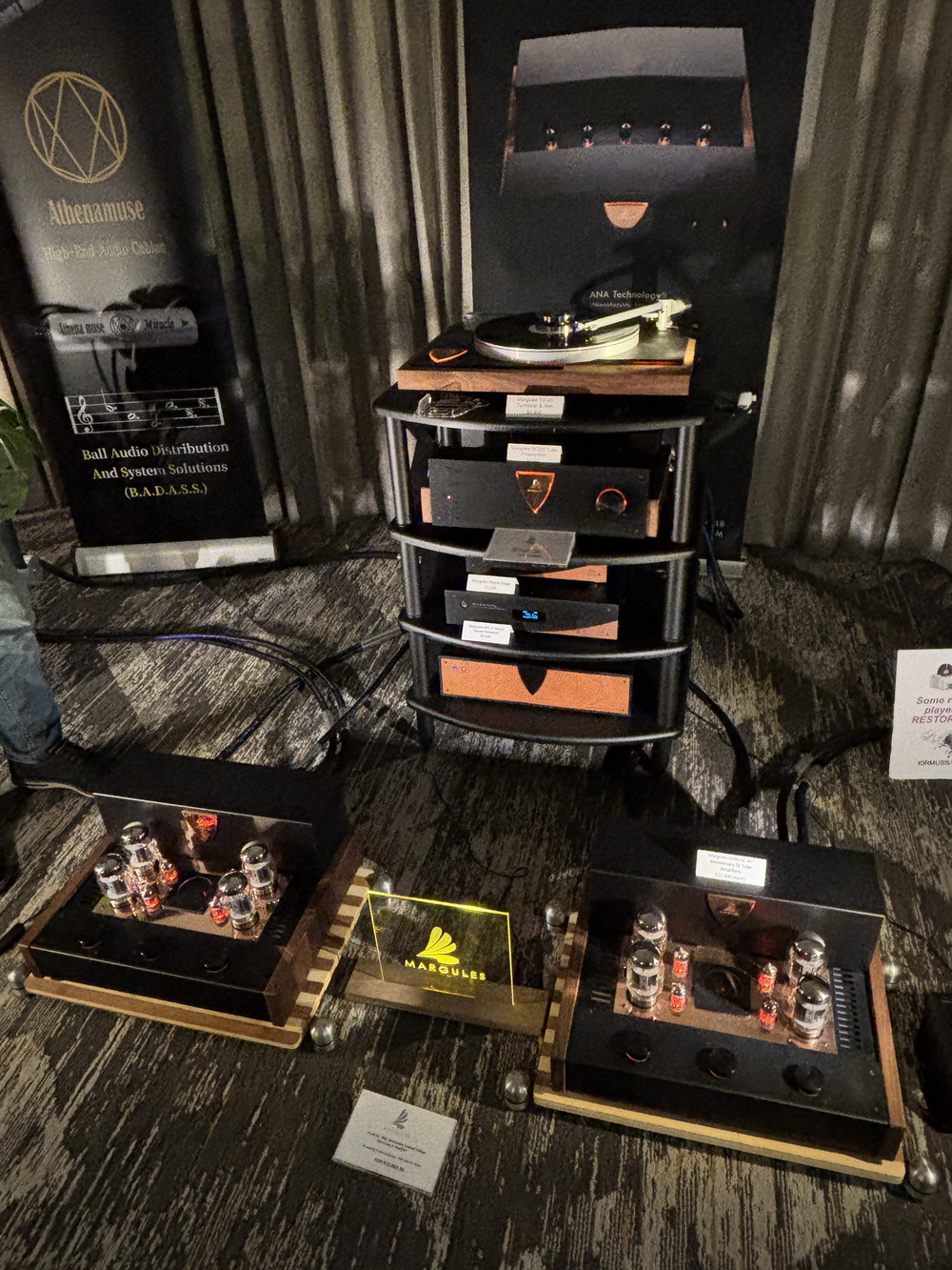 The Margules Audio room provided a presentation that made me pause and immerse myself in the listening experience. Centered around the company’s tube electronics and matching loudspeakers, the system produced sound that was both powerful and effortlessly musical.