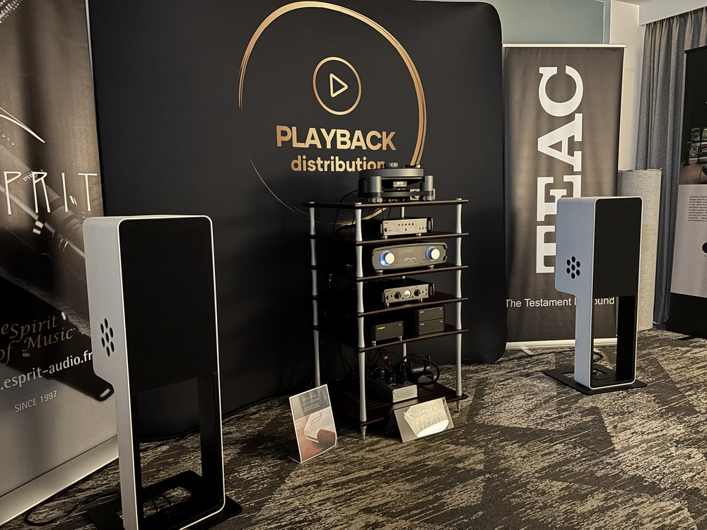 Playback Distribution put together one of the more musically satisfying rooms I encountered at the show. The system centered on the three-way Silent Pound Bloom Loudspeaker, driven by the Java Hi-Fi Integrated Amplifier, which incorporates GaN FET outputs and an LDR-based volume control. Components from TEAC handled digital duties. Vinyl playback came courtesy of the AVID Relveo Turntable fitted with the Altus Tonearm and an Audio Technica AT33MLB Cartridge.