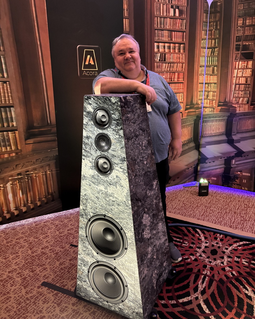 Valerio Cora, the man behind Acora Acoustics and Audio Research, and in this case, literally the man behind the speaker, knows something about making great sound at Audio Shows.
