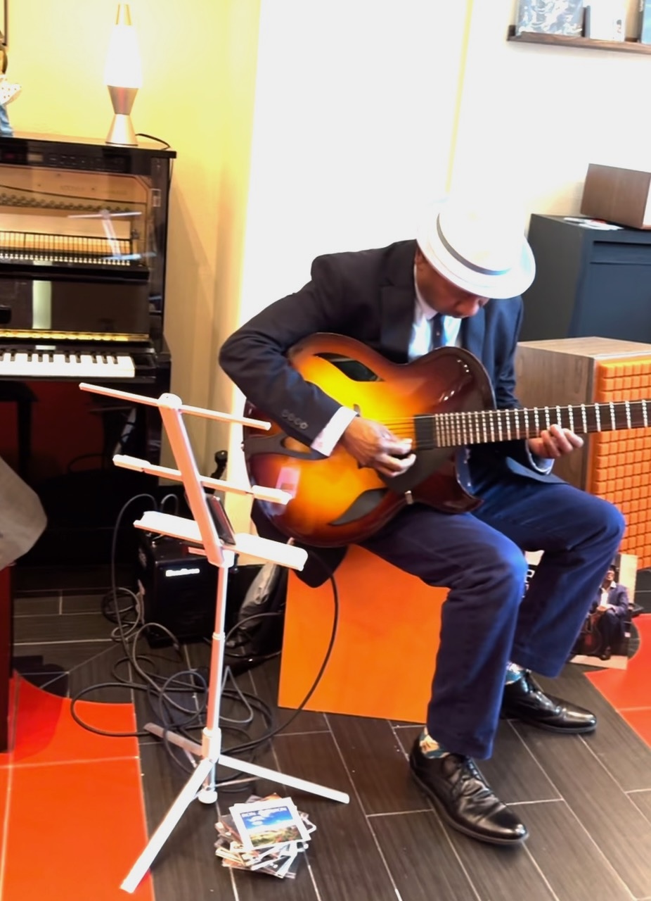 When Ron took a break I asked him how he ended up playing at The Sharp Notes. He said he'd walked by and saw the store and began talking with Evan. They worked out a deal and the trio played and the trio was great. I shot video but for now we can't easily post them. Ron had played with the great New Jersey native guitarist Bucky Pizzarelli among others and at one point he asked me if I knew who Bruce Thigpen was. I said "of course! I've known Bruce since the 1980s and I've owned his Eminent Technology speakers and ET tonearms.