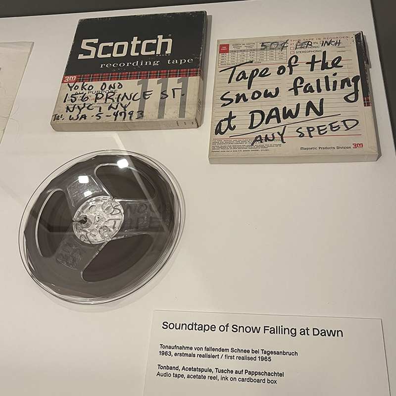 This summer, an exhibition by Yoko Ono was shown under the title MUSIC OF THE MIND. It is a joint project of Tate Modern, London (shown 2024), Gropius Bau, Berlin (2025), and Kunstsammlung NRW, Düsseldorf. This exhibition brings together a wealth of works, objects, installations, performances, “touch poems,” and “instruction pieces” created by Yoko Ono. Above all, these short instructions, written on small cards, which describe a task for the performer, form an important centerpiece of her entire oeuvre. Since the 1950s, Yoko Ono has been writing down these conceptual ideas for herself and others in short instructions typed on a typewriter. An extensive collection of these notes was first published in 1964 as a small book under the title “Grapefruit” (500 copies), which she published herself.