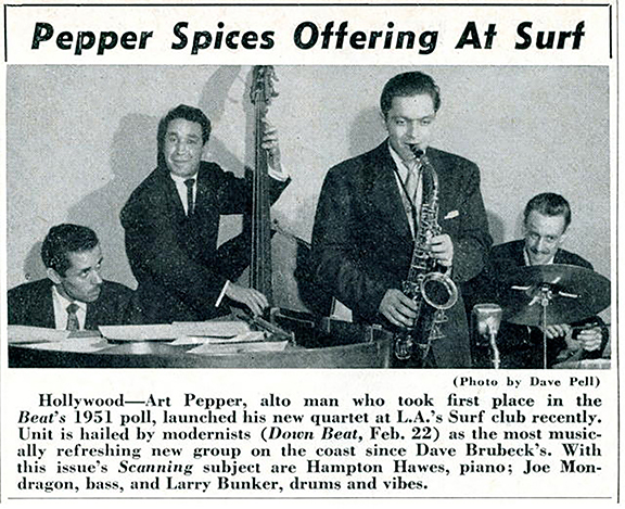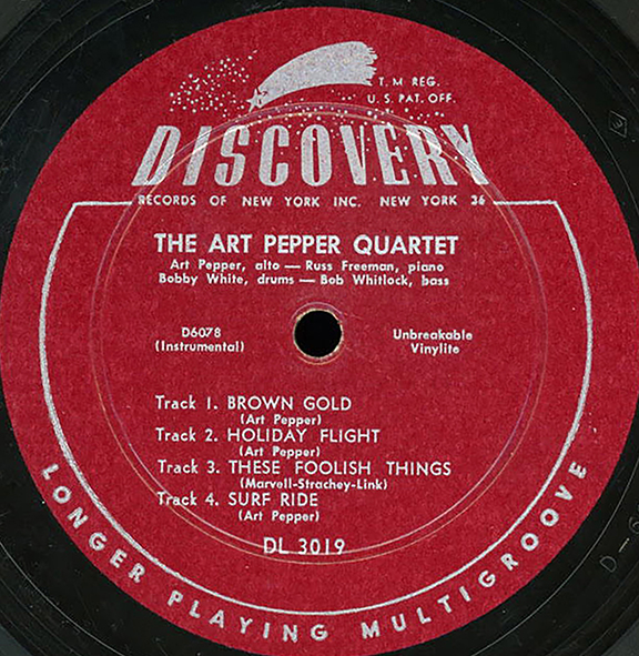 The album reviewed here, Surf Ride, was a compilation of Pepper’s first outings as a band leader. Released on the Savoy label in 1956, it is essentially a 12” LP compiled from earlier releases on the now-extinct Discovery Records label.