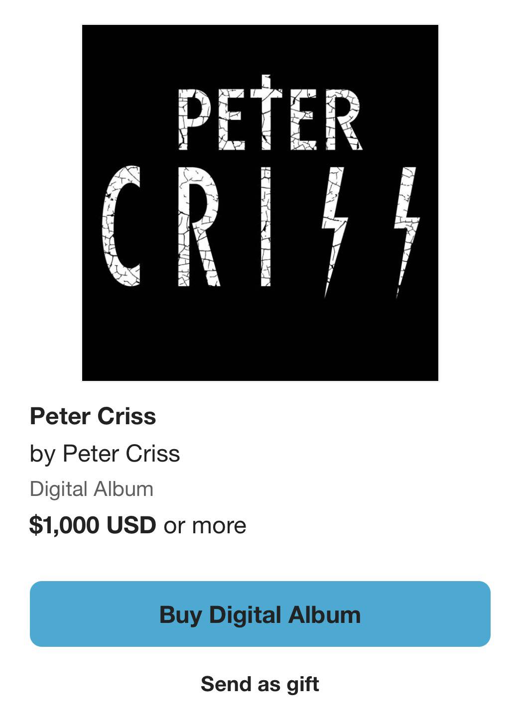 The rollout for Peter Criss (2025) has almost made the album frustratingly inaccessible, and the fault lies in its distribution by Flatiron Recordings. When it was announced, Flatiron posted physical and digital preorders on their Bandcamp page, and other retailers followed suit. Working on the Bandcamp platform became an issue when Flatiron set the price of a digital download of the album to $1,000 (yes, you read that correctly). Peter requested that his account be disabled, which also resulted in the deletion of the “Creepy Crawlers” music video from YouTube.