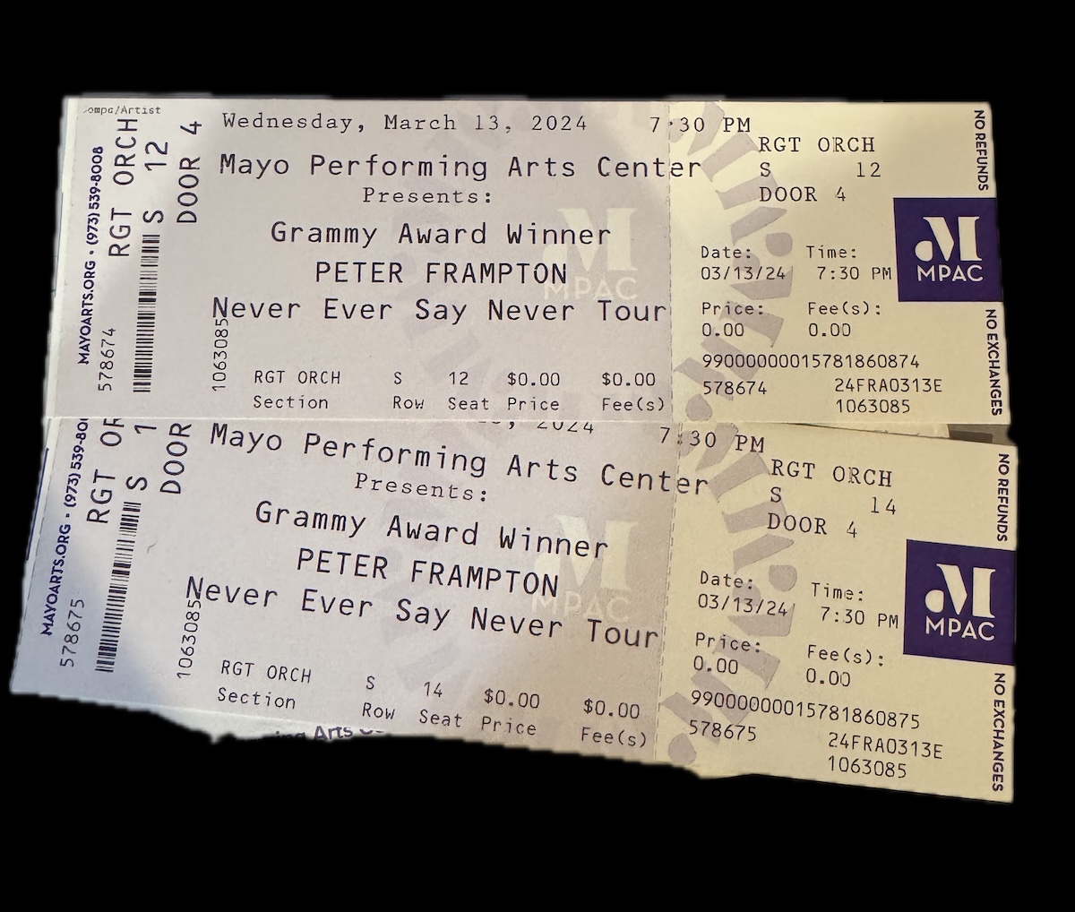 "This looks like a fire drill at an assisted living center" I quipped to my wife as we exited the Mayo Performing Arts Center theater and into the lobby March 13th, 2024 following Peter Frampton's energized and most enjoyable "feel good, rock hard" performance. Sorry, but that's what the audience looked like half a century later. At least we still are alive. I could give you a long list of who's not as I'm sure can many reading this.